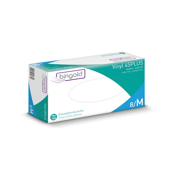 BINGOLD Vinyl 45PLUS Einmalhandschuhe - M, 100 Stück